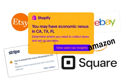 * State별 규정에 따라 정확한 Tax rate를 적용 고객에게 Sales tax를 부과합니다.